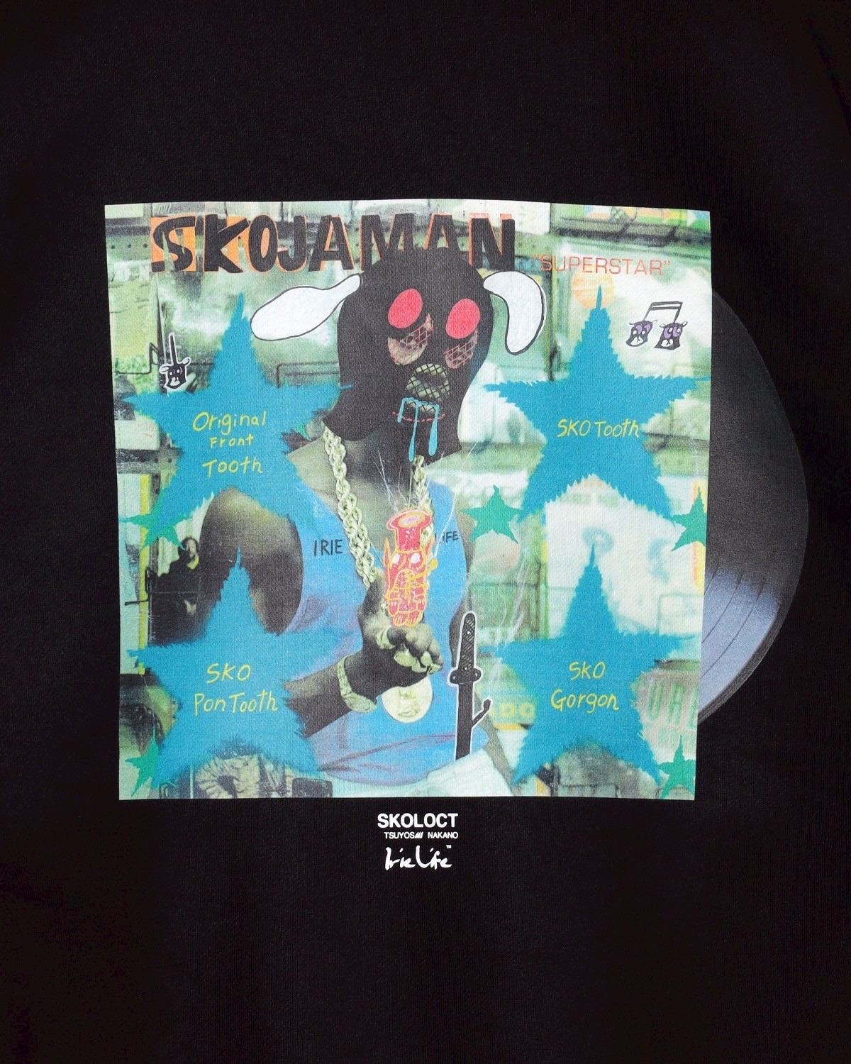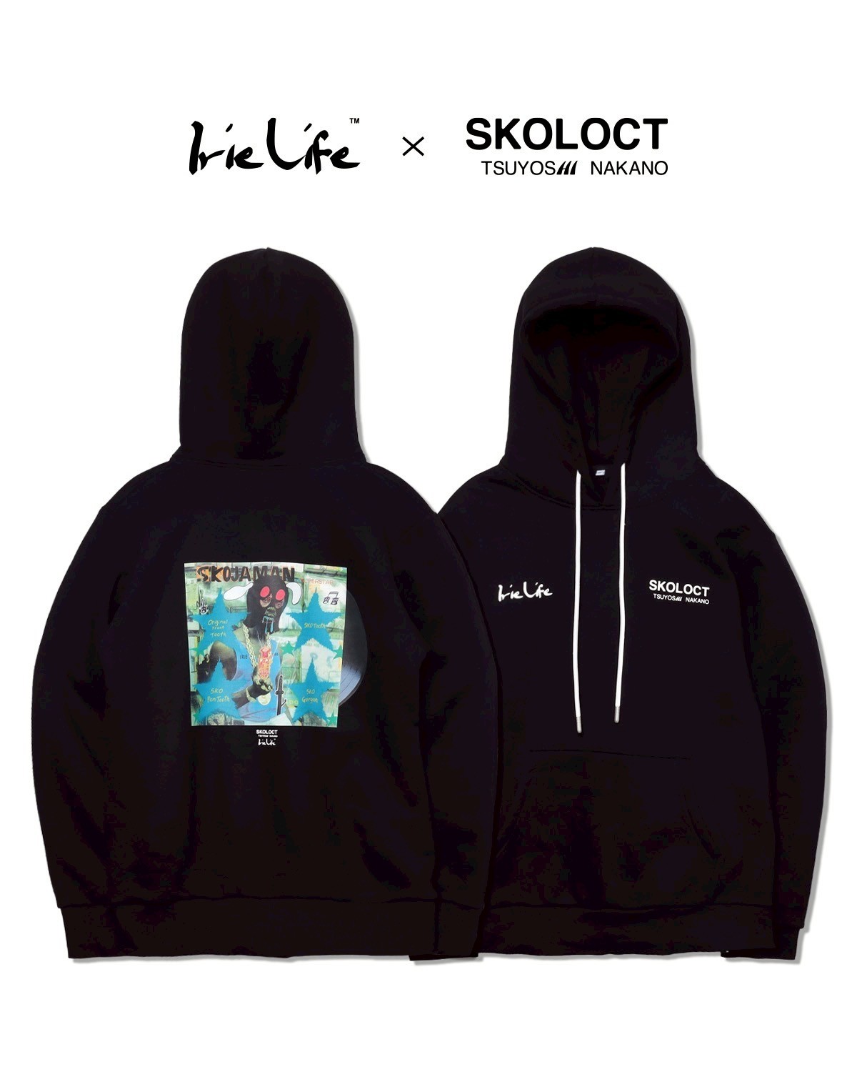 当時の空気感を大切にしながら、SKOLOCT名義であり、彼の作品世界を象徴するクリーチャー(キャラクター)を、2026年仕様のHOODIEとして再構築しました。