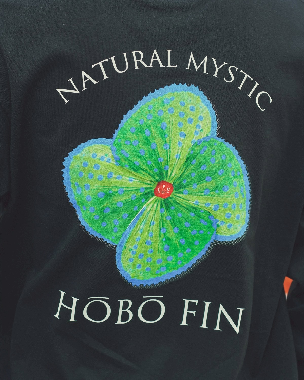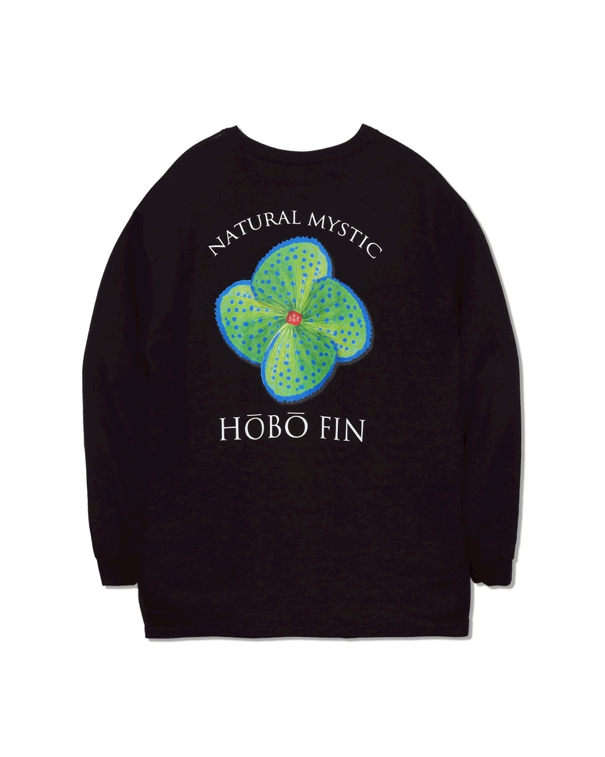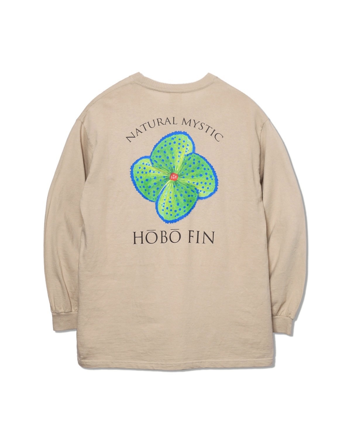 背面に大きく咲く HOBO FIN FLOWER は、自然が持つ造形美・色彩・生命力をそのまま凝縮したアートワーク。