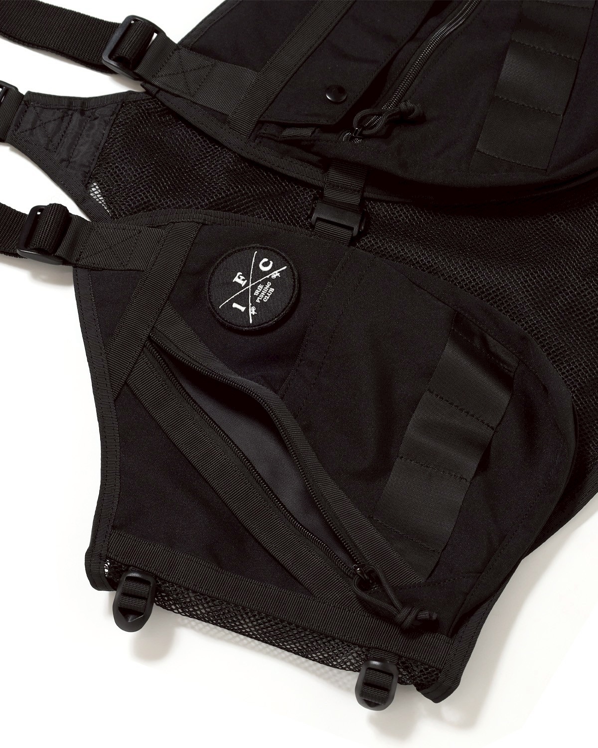 左胸のIFC CROSS ROD織ネーム、背面Dリング、高耐久のモールディングファスナー&樹脂パーツなど、細部にまでIFCらしいこだわりを込めた“City to Shore” を象徴する、汎用性と機能性を兼ね備えたアングラーのためのギアベストが登場。