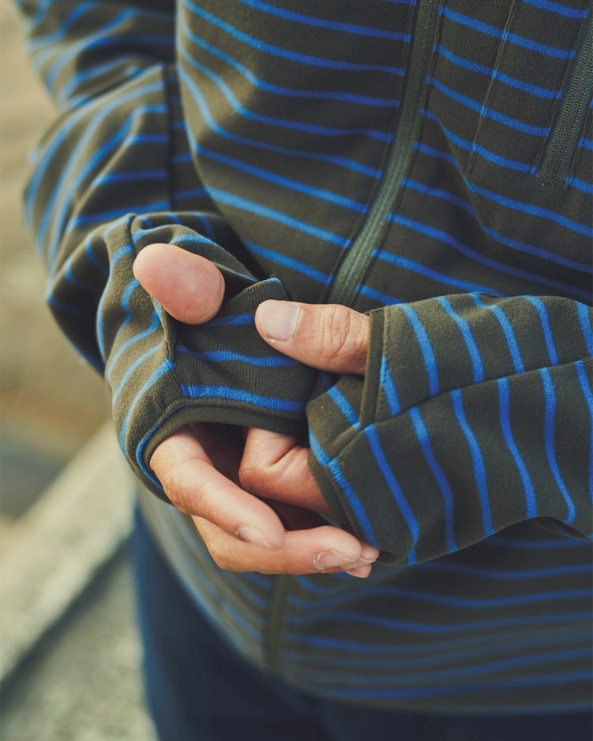 さらに袖口には指ぬきを搭載し、手の甲までカバーすることで冷えを防ぎながら、グリップ操作もしやすい仕様に。